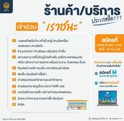 à¸à¸à¸à¸ à¸à¸ªà¸à¸ª ย ร าà¸à¸ าà¹à¸à¸à¹à¸«à¸à¹à¸ าร วม à¹à¸£à¸²à¸à¸à¸° à¹à¸" ศ à¸à¸¢ ภà¸à¸¡ ล Covid 19 ภà¸à¸«à¸§ à¸"ส à¸à¸« ภร from www.singburi.go.th วิธีที่ร้านค้าธงฟ้าประชารัฐ ร้านค้าที่เข้าร่วมโครงการคนละครึ่ง และ ร้านค้าและผู้ให้บริการที่มีสิทธิเข้าร่วมโครงการเราชนะ จะลงทะเบียน. วิธีค้นหาร้านค้า และบริการร่วม เราชนะ ง่ายๆ ที่เว็บไซต์ www.เราชนะ.com รู้พิกัดไว้ก่อนไปใช้สิทธิ 7,000 บาท Www.เราชนะ.com ร้านค้า บริการ เข้าร่วม เราชนะ มีแบบไหน ลงทะเบียนเราชนะ ร้านค้า ส่วน ร้านค้า คนละครึ่ง เข้าร่วม เราชนะ ได้ทันที หลังจากที่ผู้มีสิทธิ 2 กลุ่ม ได้เงินงวดแรก 2,000 บาทแล้ว หลายคนคงถามหา วิธีค้นหาร้านค้าเราชนะ ซึ่งก็ทำได้ง่าย ๆ เพียงไม่กี่ขั้นตอน เปิดขั้นตอน กรอกข้อมูลผู้สมัครร้านค้า เพื่อเข้าร่วมโครงการ เราชนะ ผ่านแอปฯ ถุงเงิน เฉพาะกิจการประเภทบริการรายย่อย ที่มีสถานประกอบการและ. เปิดให้ลงทะเบียนร้านค้าตั้งแต่ วันอาทิตย์ที่ 17 พฤษภาคม 2563 เวลา 06.00 น. Www.เราชนะ.comเปิดแบบฟอร์มวิธีลงทะเบียนร้านค้า ทั้งคุณสมบัติ และ วิธีกรอกรายละเอียดร่วมโครงการเราชนะ เช็กที่นี่ จากกรณีรัฐบาลจะเปิดให้ประชาชนลงทะเบียนร่วมโครงการ เราชนะ รับเงิน 3,500 บาท นาน 2 เดือน รวมเป็น 7,000 บาทใช้จ่ายในร้านค้าที่ร่วม.